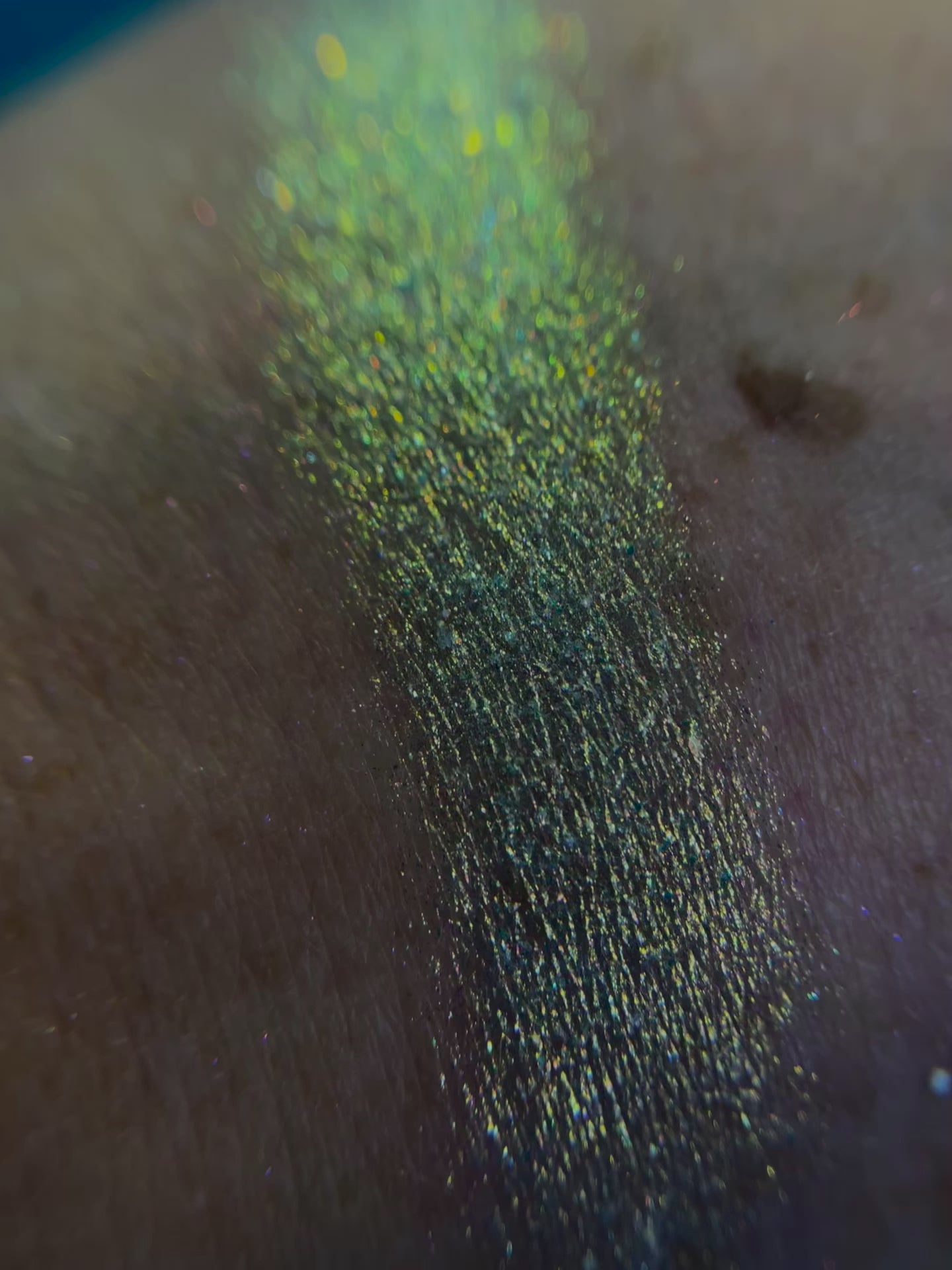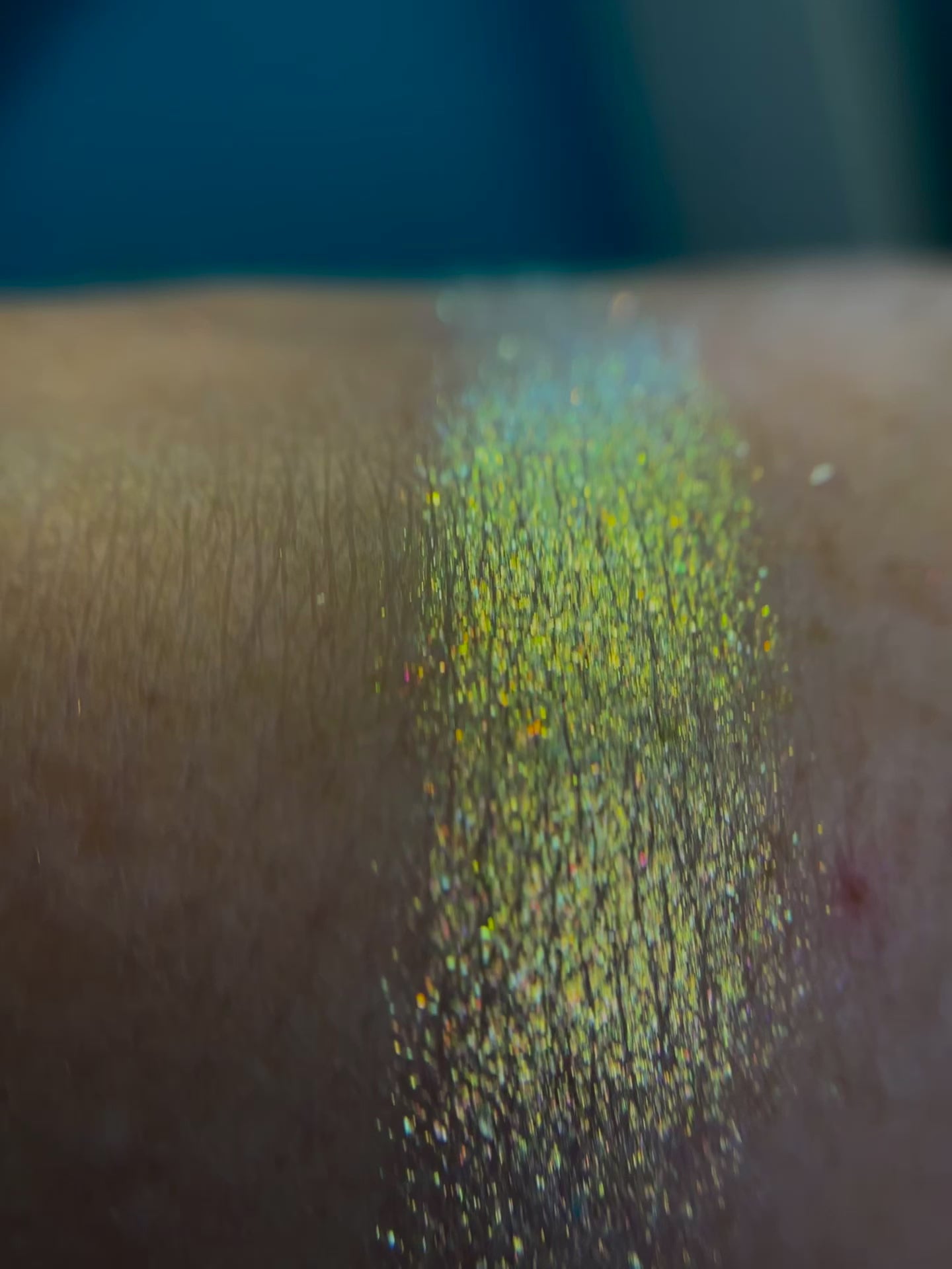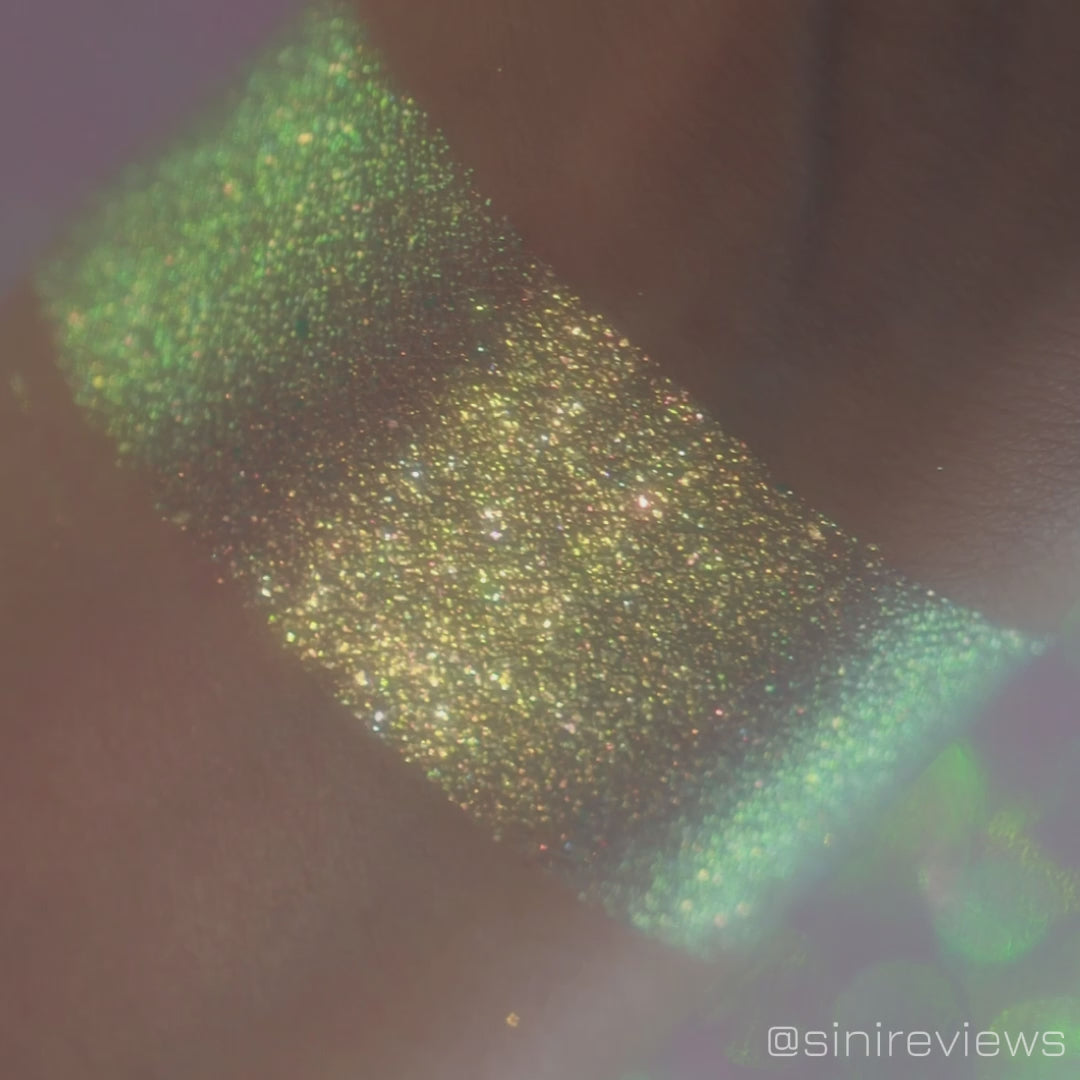 - It shifts from.. warm gold, to white gold, to green, to teal to blue, with red, orange, gold & green Iridescent multidimensional sparkles throughout, and a unique super shiny, sparkly, & shifty topper. ✨✨