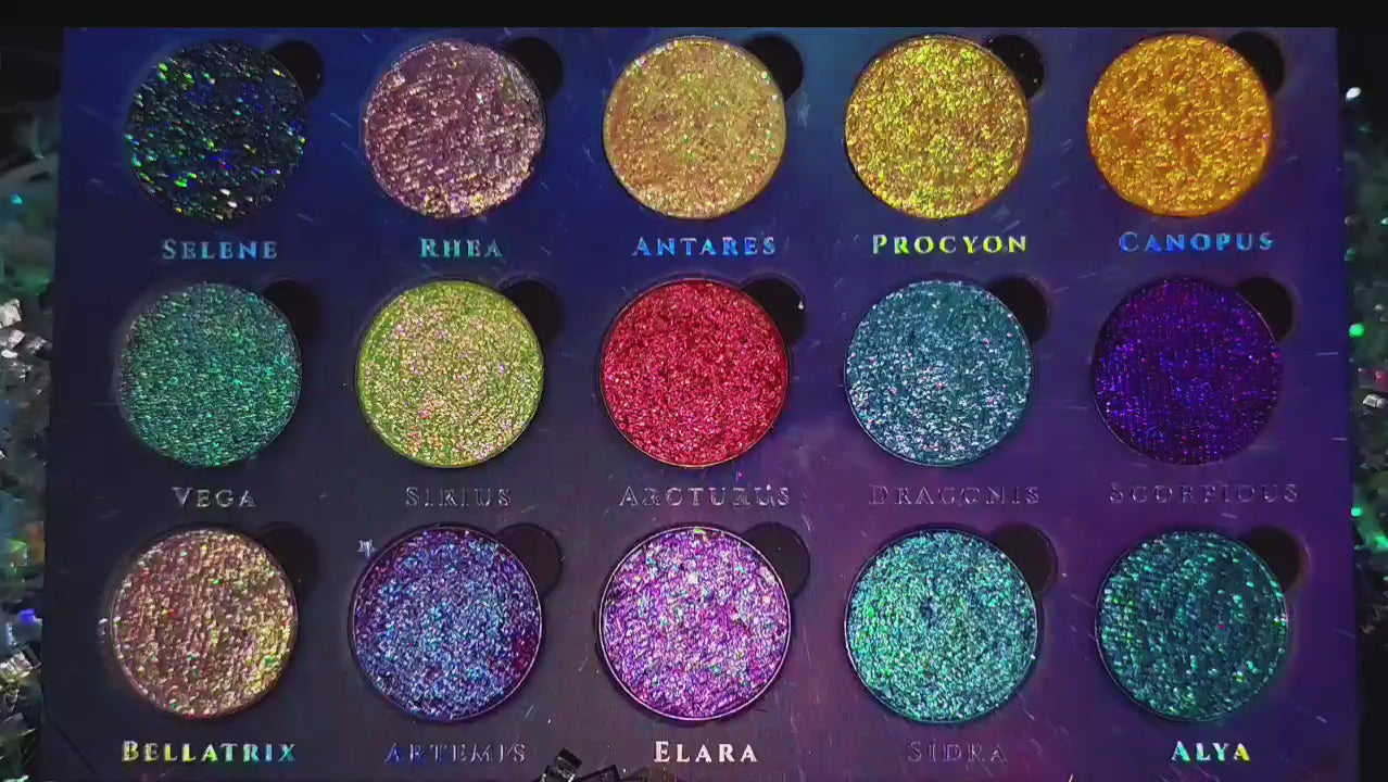 Seven years in the making, Cosmic Shift is my first (“real”) full multichrome + extreme multichrome palette: 15 intensely shifty, sparkly and shiny celestial shades that refuse to be subtle. From soft starlight sheen to full meteor-shower lids, every shade is designed to grab the light, grip to a tacky base, and make your eyes the center of the galaxy. 🌌✨