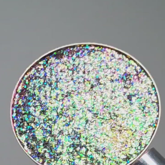 It leans ethereal but still loud — perfect as a sparkling veil over other shadows, a beaming inner-corner spotlight, or tapped lightly over the cheeks for editorial star-child vibes. Mixed with a mixing medium and painted on, Astraea becomes a smooth, icy-rainbow liquid multichrome that loves to surprise you with extra shifts every time you move. ❄️🌠