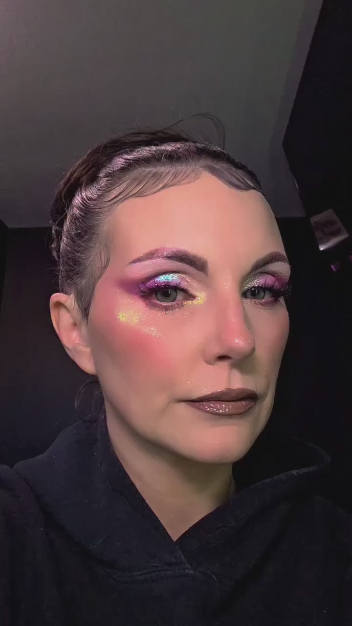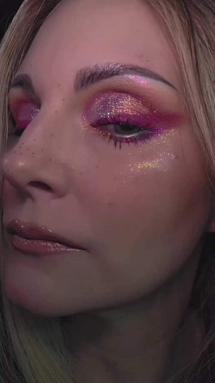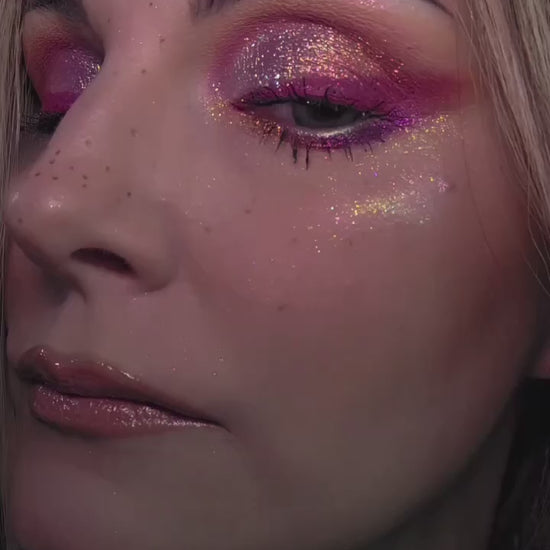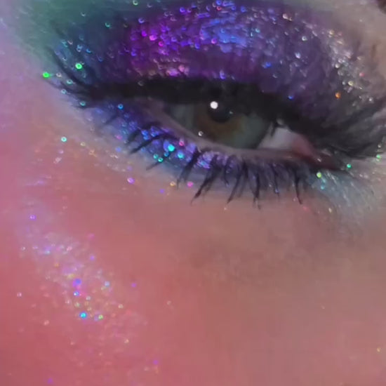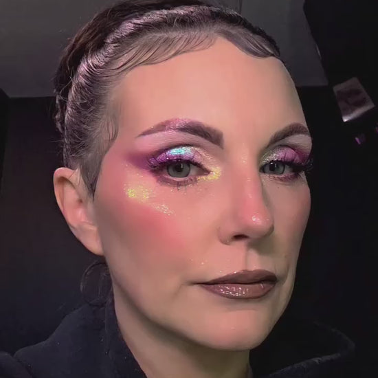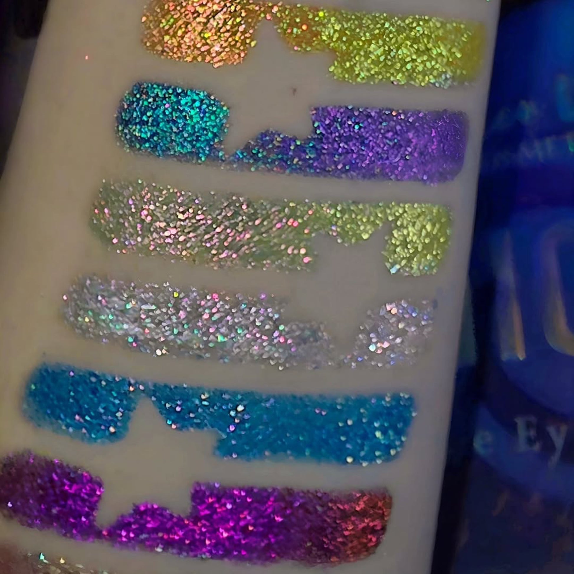 It leans ethereal but still loud — perfect as a sparkling veil over other shadows, a beaming inner-corner spotlight, or tapped lightly over the cheeks for editorial star-child vibes. Mixed with a mixing medium and painted on, Astraea becomes a smooth, icy-rainbow liquid multichrome that loves to surprise you with extra shifts every time you move. ❄️🌠