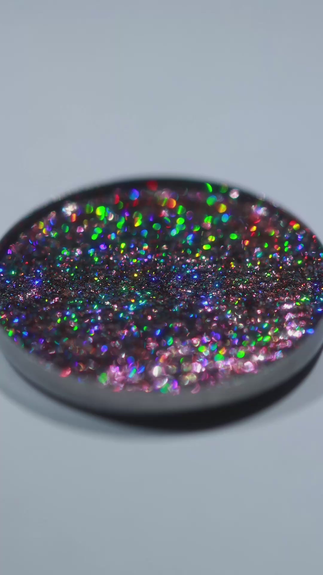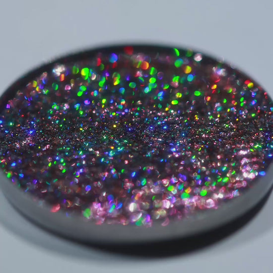 If a lunar eclipse and a disco ball had a love child, it’d be Selene. This holochrome pressed-flake hybrid flips from gunmetal gray and inky black to blinding silver rainbow holographic, with flashes of green, red, orange, and the occasional “did you just see that?” purple flicker. She’s loud, flaky, and behaves like the afterparty on your eyelids.