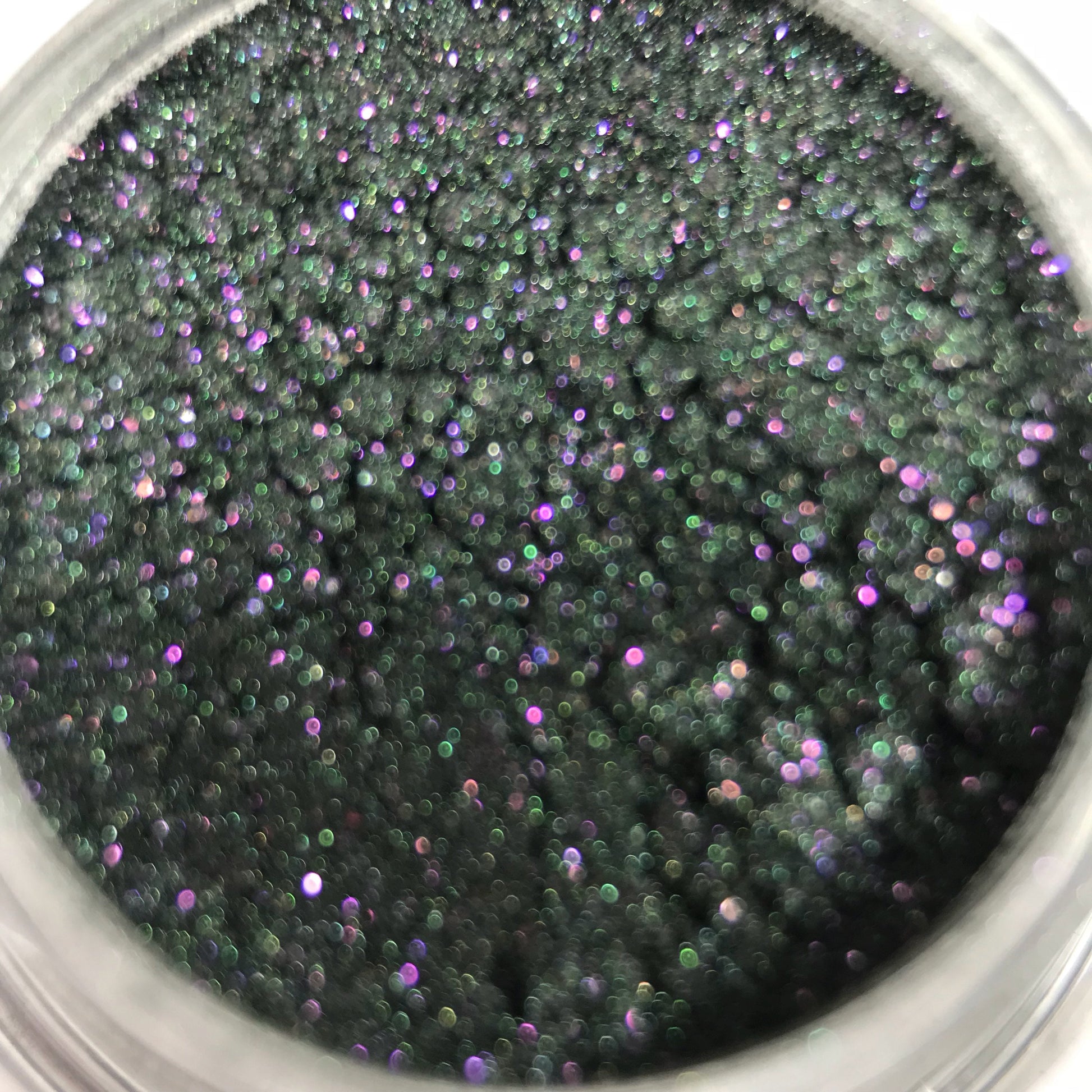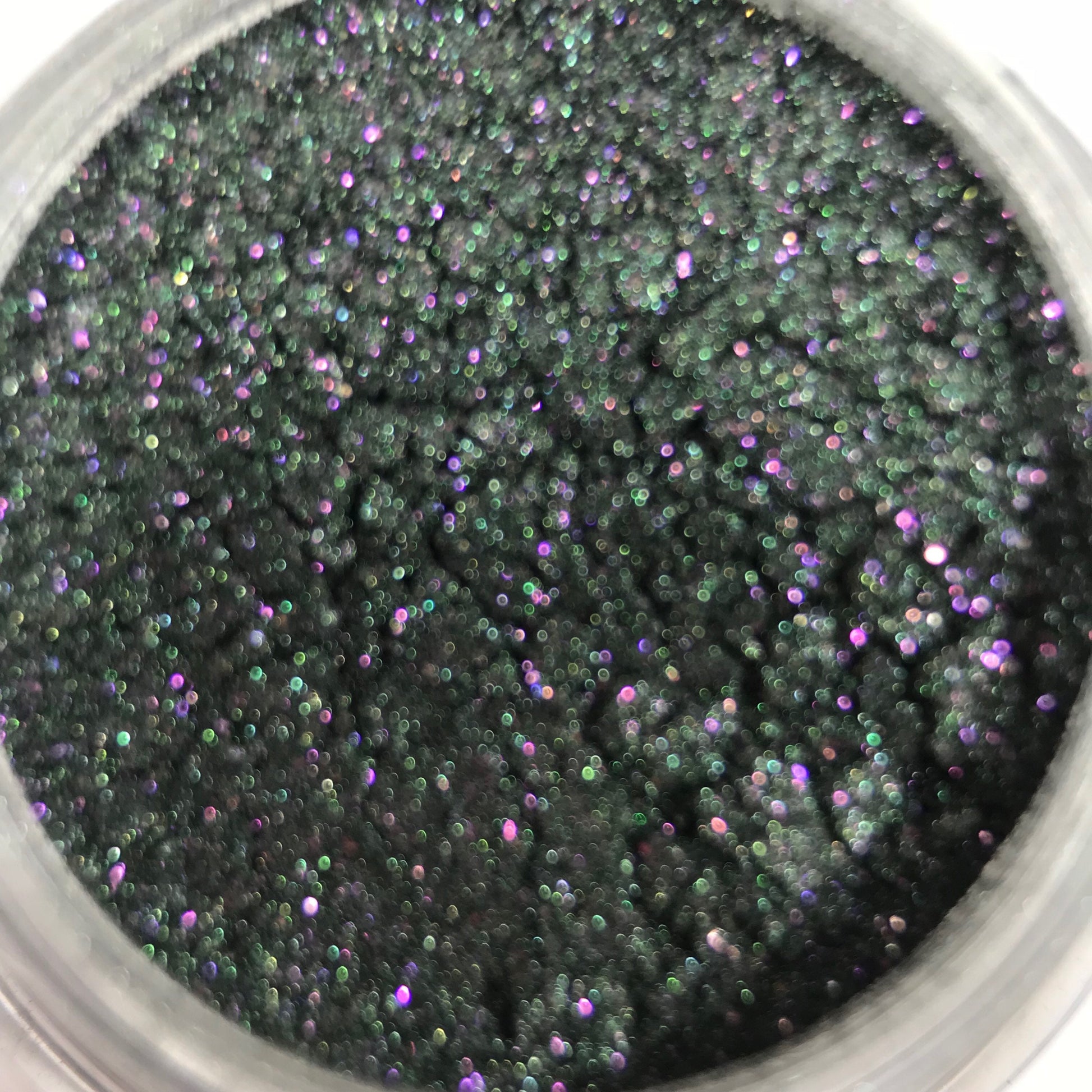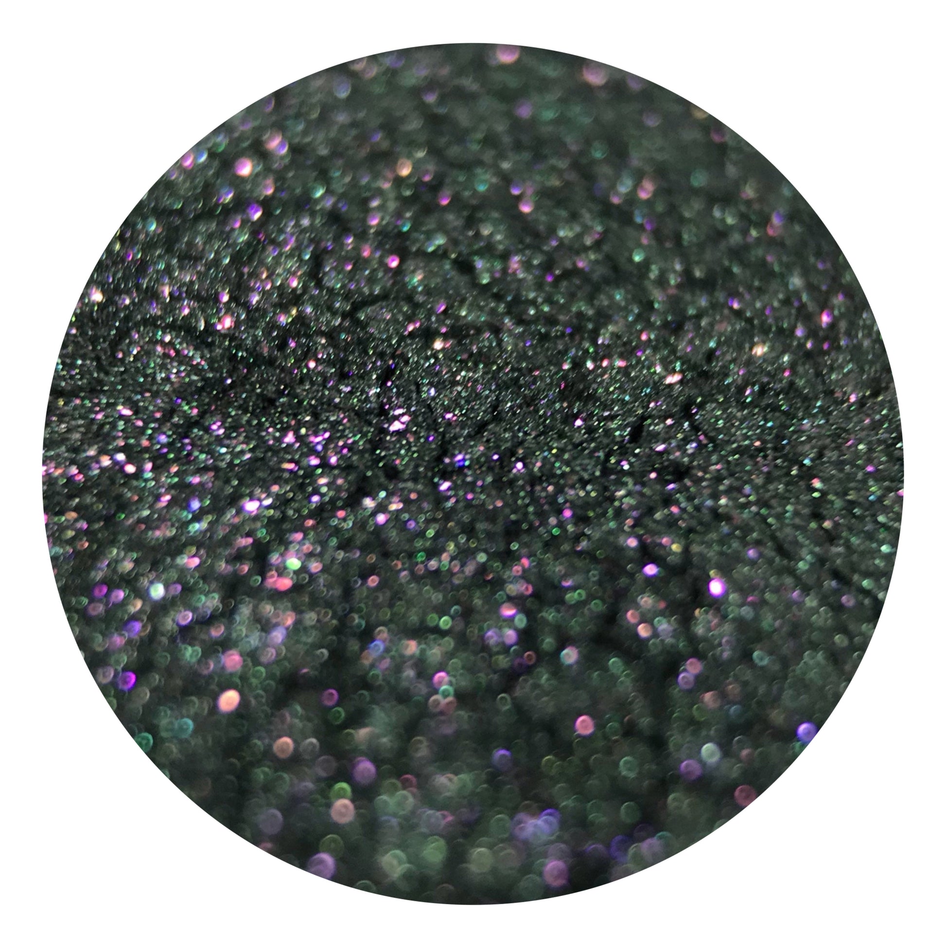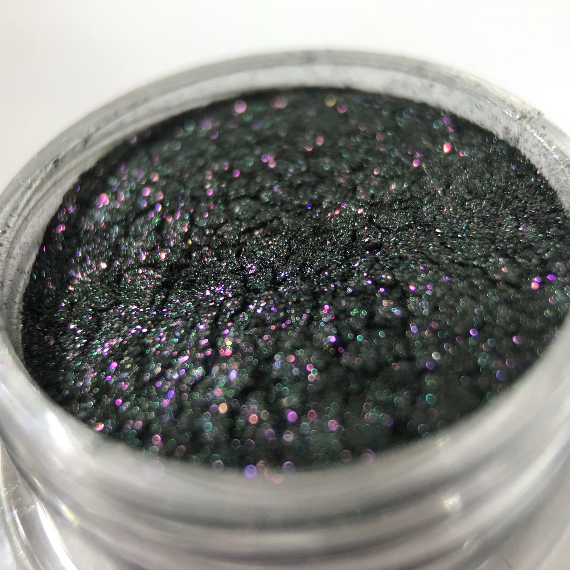 Dragon’s Tale - is a gorgeous, deep forest green multidimensional duochrome, loose pigment with a purple and grey shift, and tons of purple & pink sparkles.