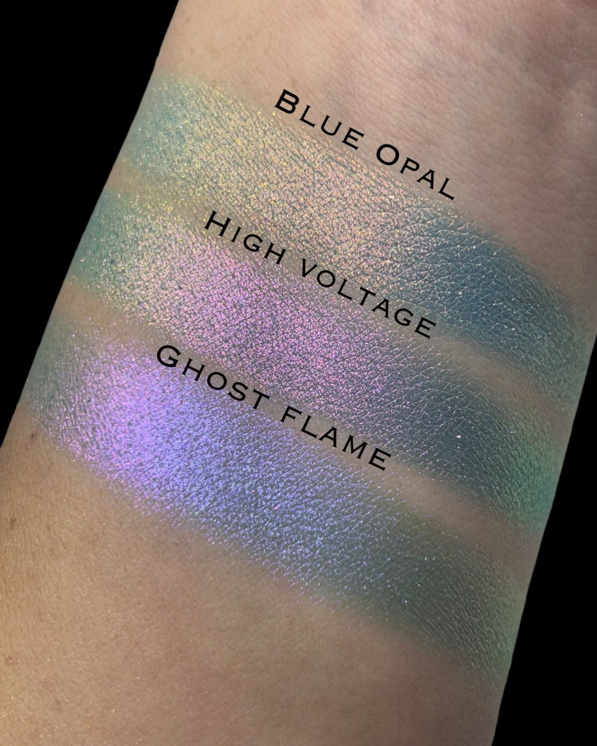 ** I recommend using a tacky base on the eyes, like a glitter primer or foiling serum/ mixing medium for sparkly and or color shifting shades. It will help the sparkles adhere better and make the color shift more intense.