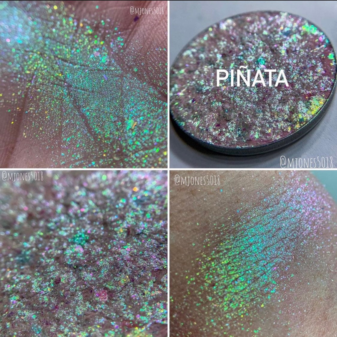 Depending on the different lighting and angles Piñata shifts from Iridescent Green to Teal to Blue to Purple to Pink, Red and Orange with multicolored multidimentional sparkles through out, with our unique signature super sparkly birthday highlighter topper.