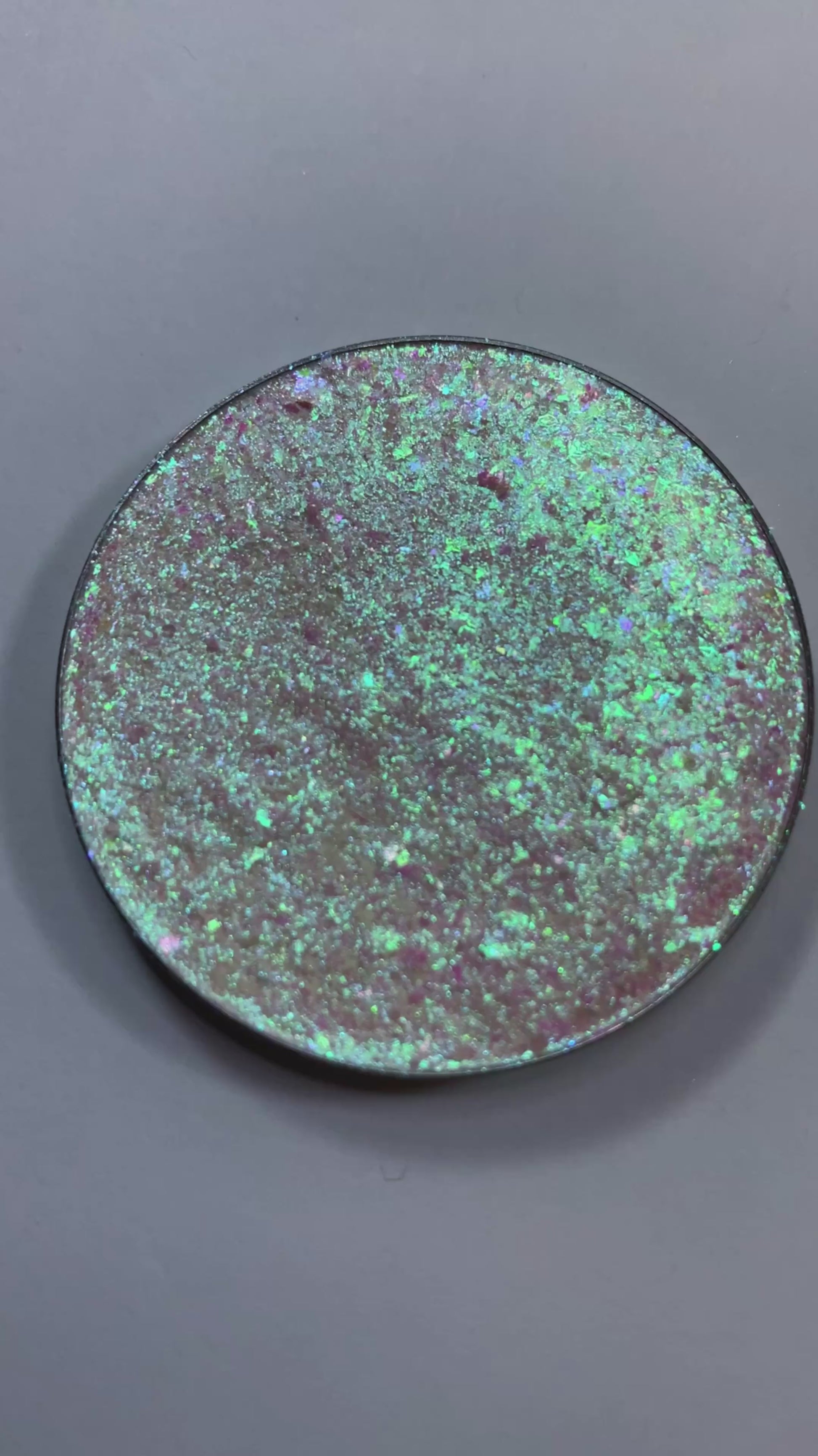 Also comes in a 44mm pan with 6 grams of product (much larger than our usual size options) with your choice to add a black magnetic compact with our logo printed on the clear window so you can see this gorgeous highlighter, before you even open it.