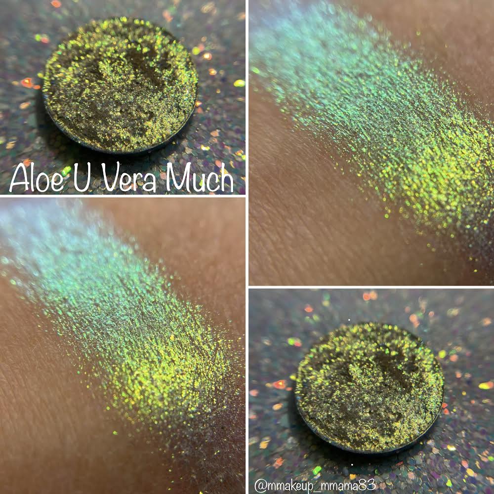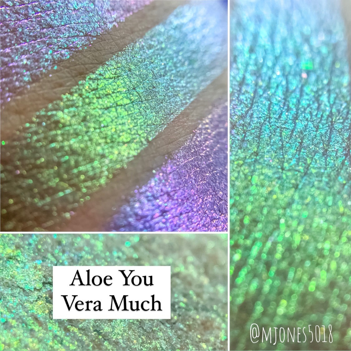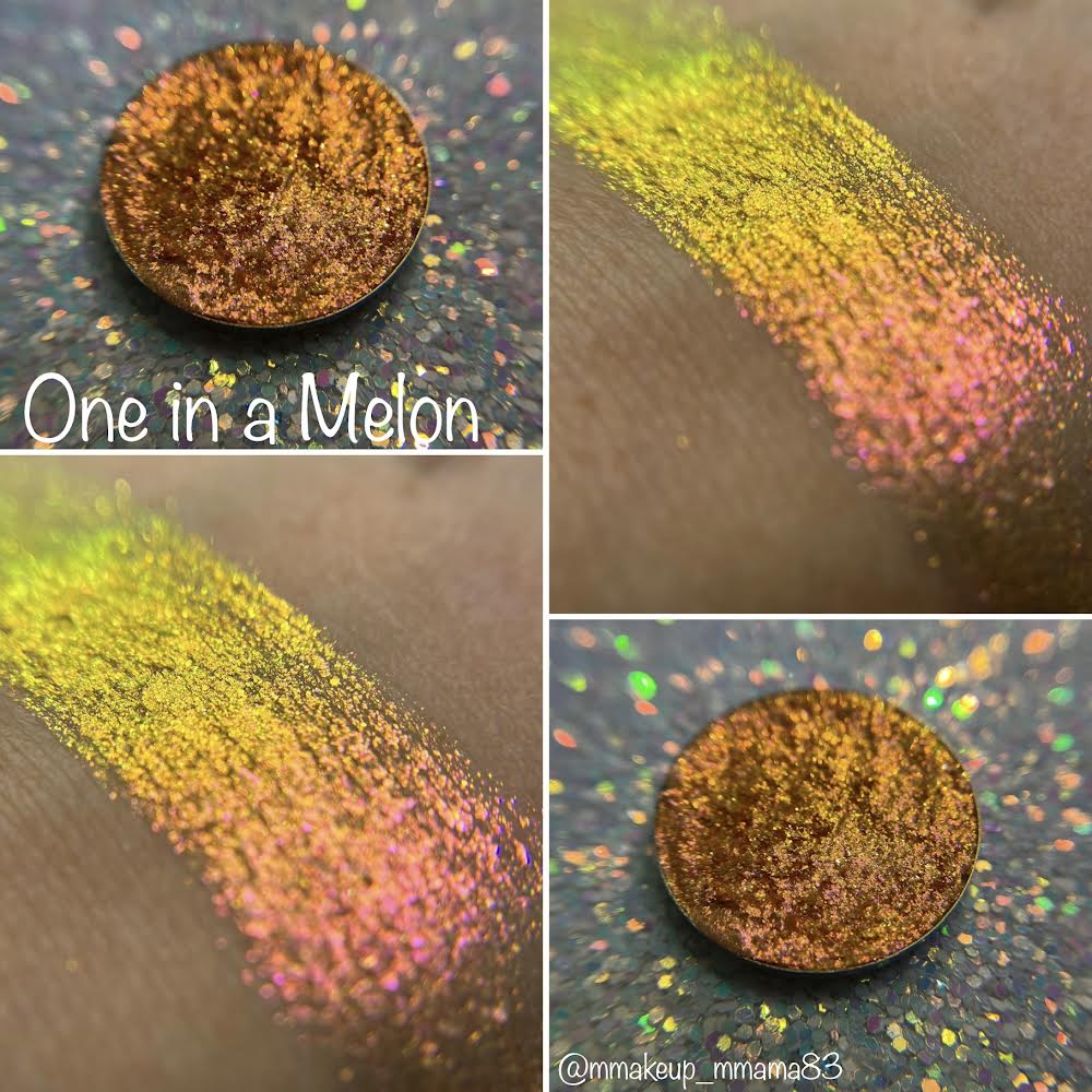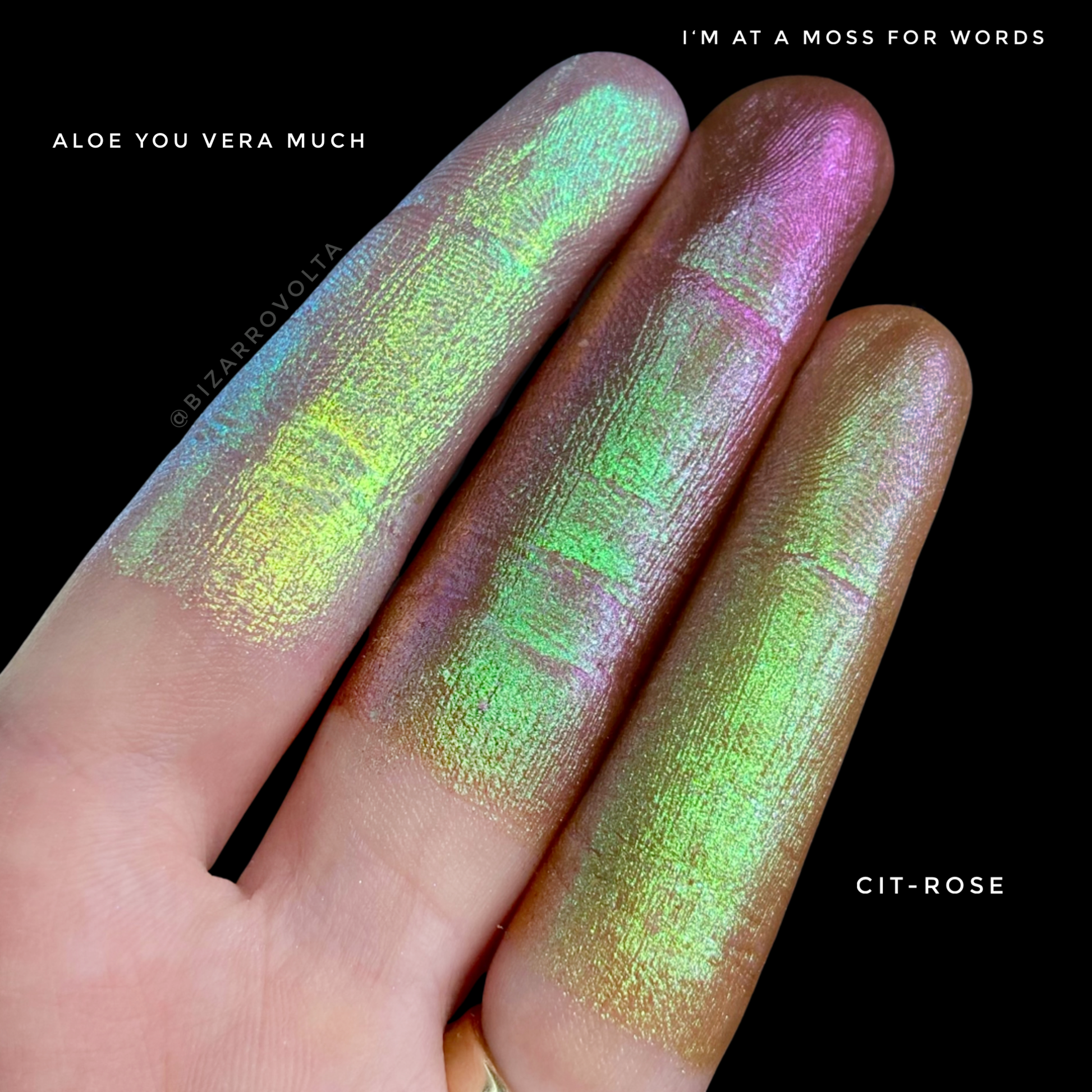 A slightly larger particle - Iridescent green to blue to violet to pink to red to orange multichrome highlighter.