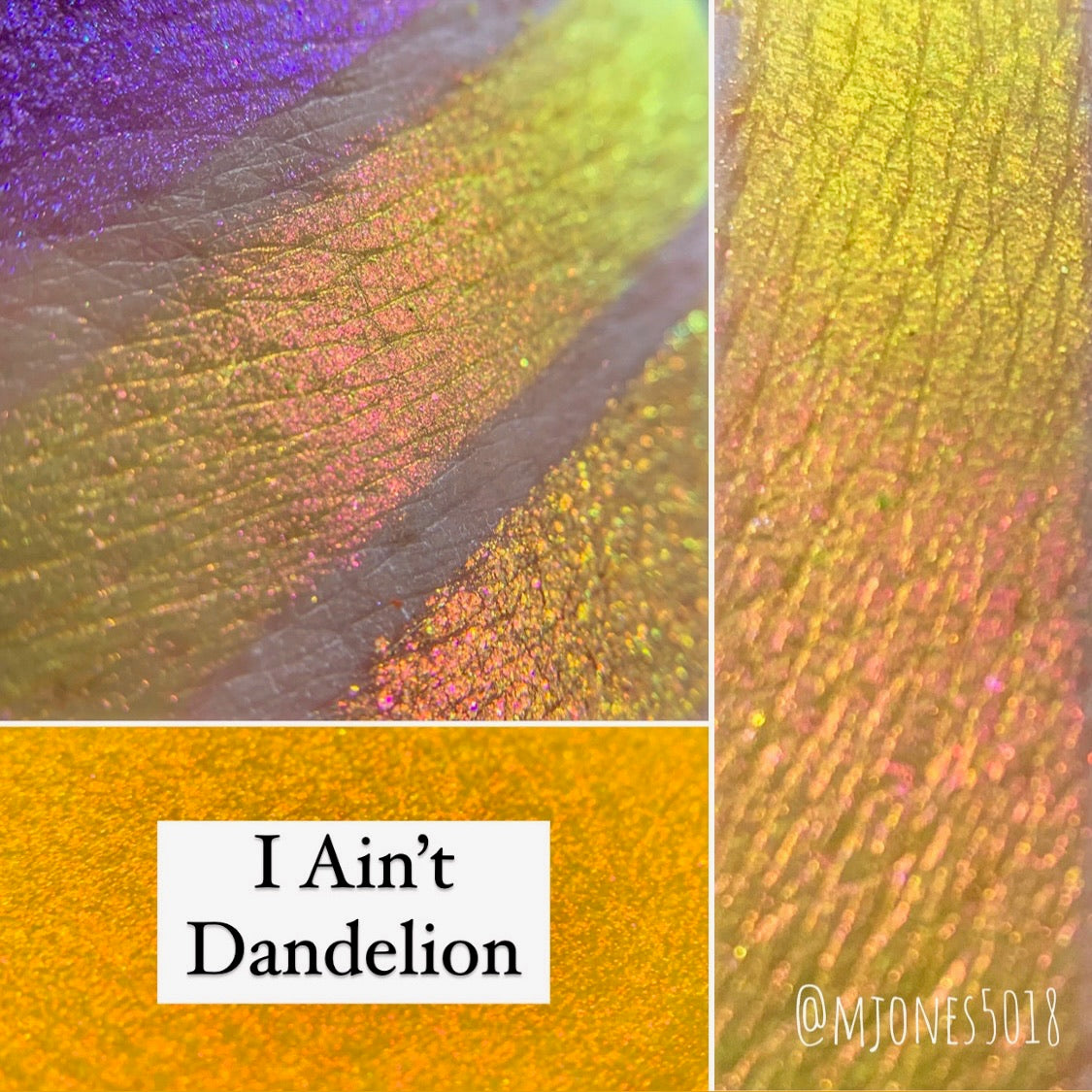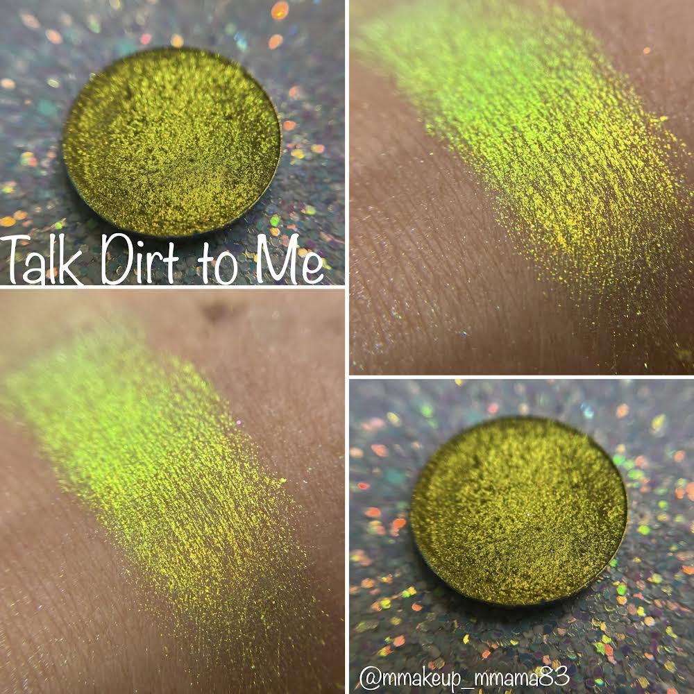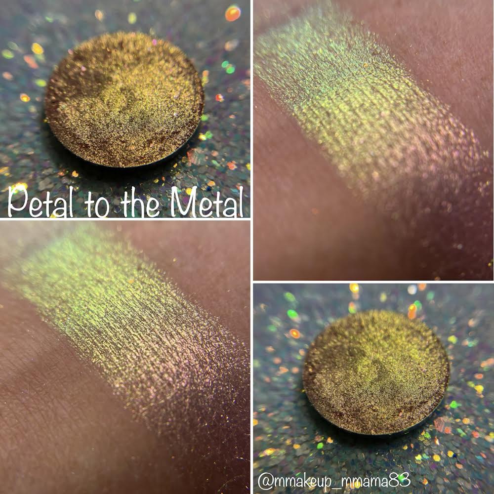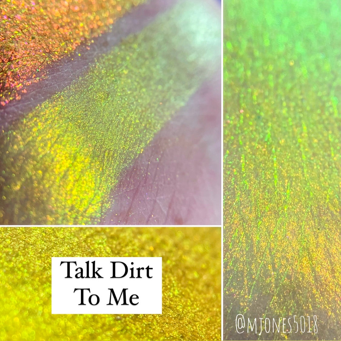 A creamy, soft, and slightly flaky - Iridescent Gold to green to blue and slight violet multichrome.