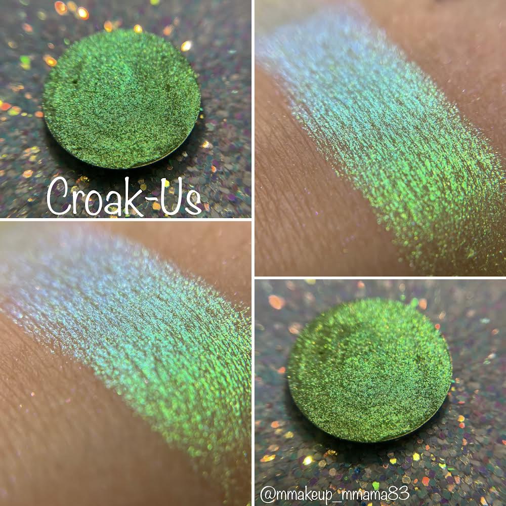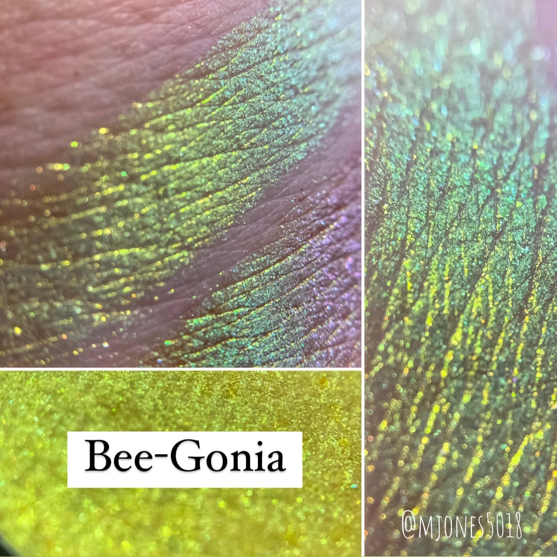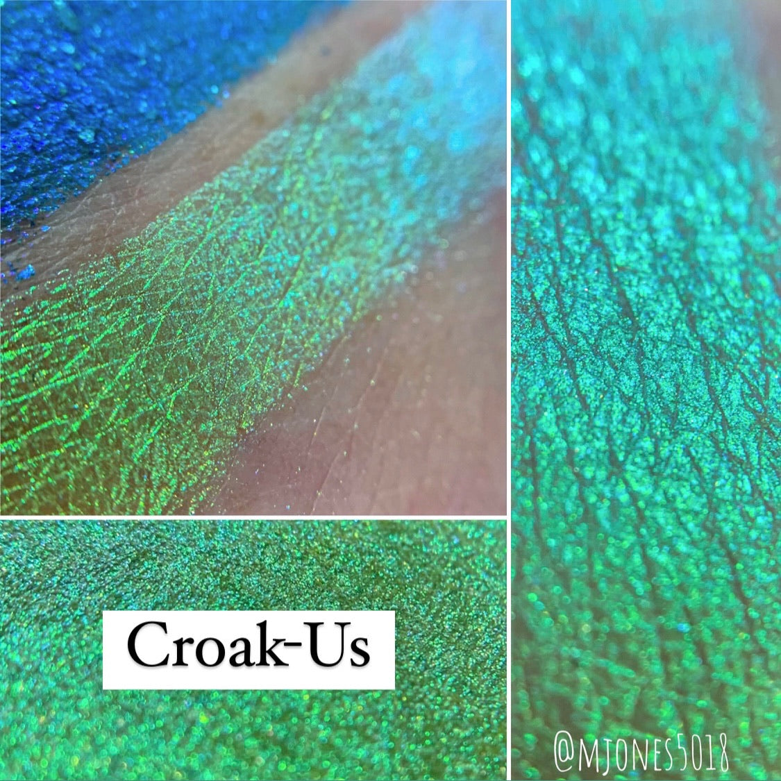 A creamy, soft, and slightly flaky - Iridescent Gold to green to blue and slight violet multichrome.