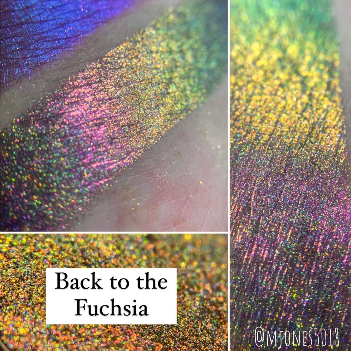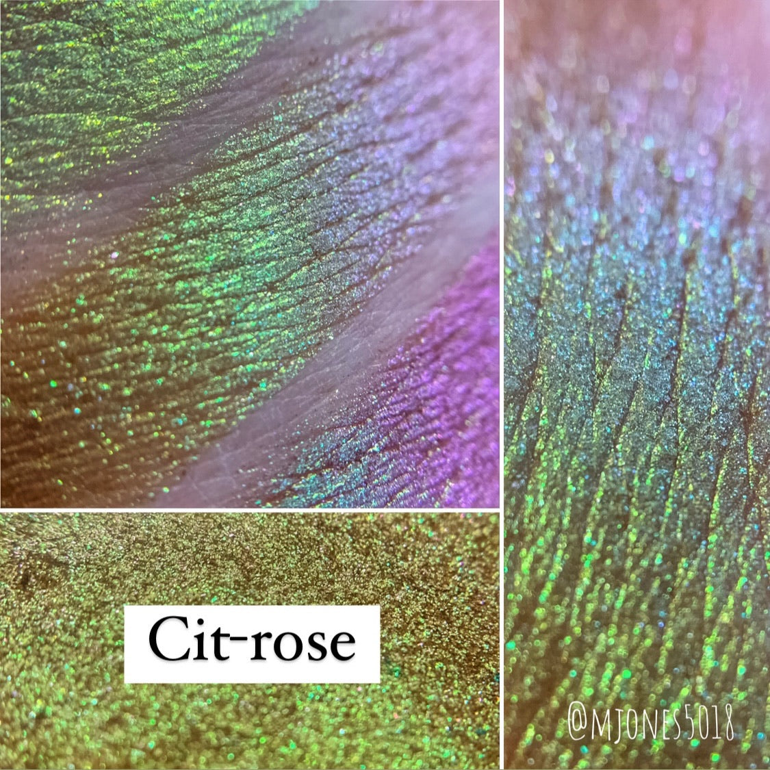 A smooth - Fuchsia to red to orange to green holographic multichrome. (The holographic is intense and doesn’t need a direct light source to be seen!)